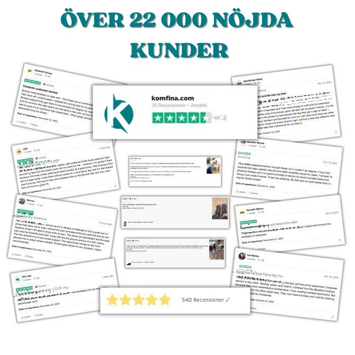 Med Komfina’s ultratunna 4 mm sulor känns varje steg som att gå barfota. Återupptäck glädjen i att vara aktiv tack vare den innovativa zero-heel-teknologin som stärker dina muskler, hjälper dina fötter att inte bli ömma och effektivt minskar smärta i rygg, knän och fötter.